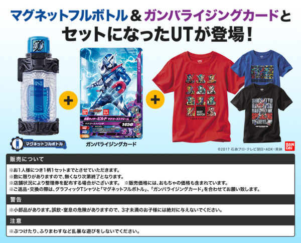 【仮面ライダービルド】「マグネットフルボトル・ ガンバライジングカード」付きユニクロTシャツ 27日発売開始