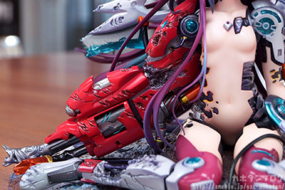 ボロボロに壊れてしまった右腕の巨大な銃器など、メカニカルな部分の造形・塗装の精緻な仕上がりに是非ご注目ください。