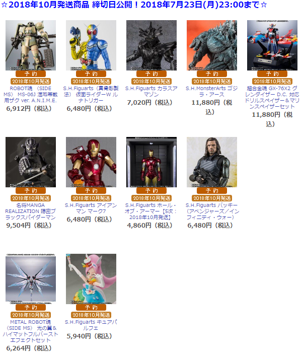 魂ウェブ商店 2018年10月発送商品(プレバン)
