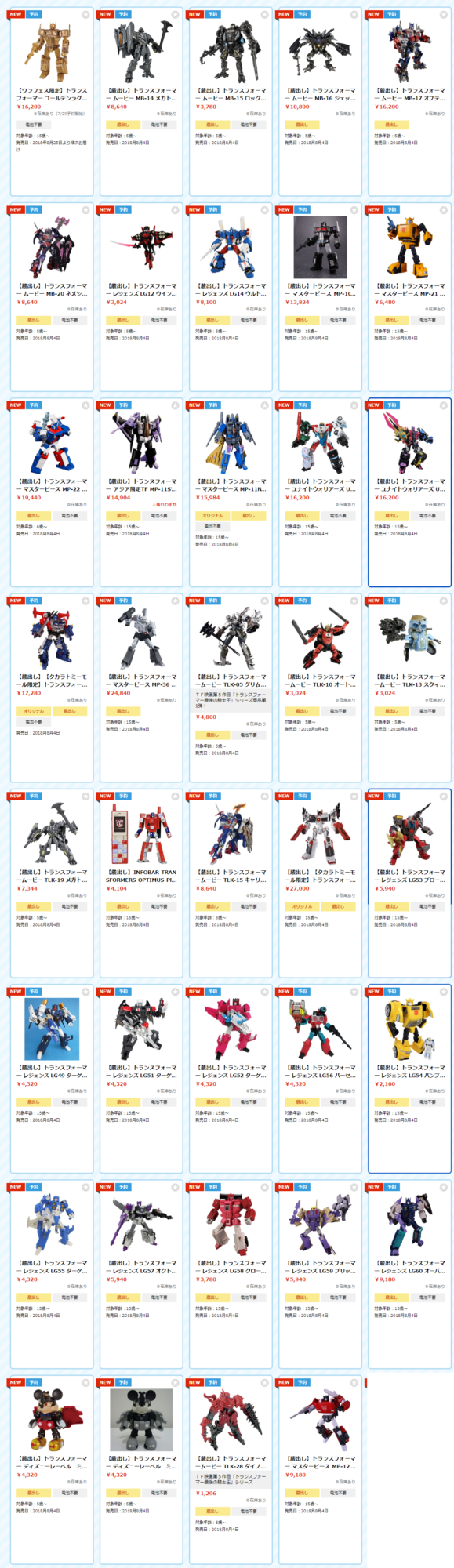 トランスフォーマー販売ページ