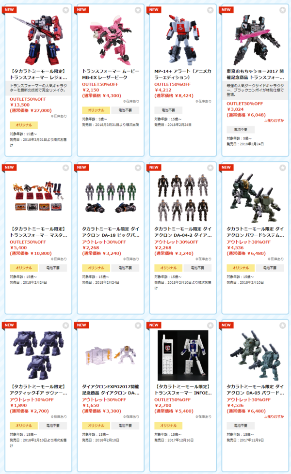 ■タカトミモール「トランスフォーマー」「ダイアクロン」アウトレットセール 本日17時開催