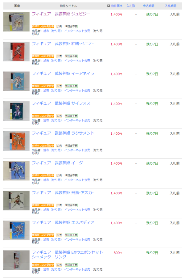 「武装神姫」が官公庁オークションで9点出品、税金滞納で差し押さえ?