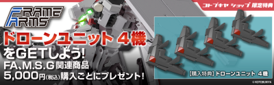 フレームアームズ、M.S.G関連商品5,000円(税込)お買い上げ毎に、「ドローンユニット4機」を1セットプレゼント!