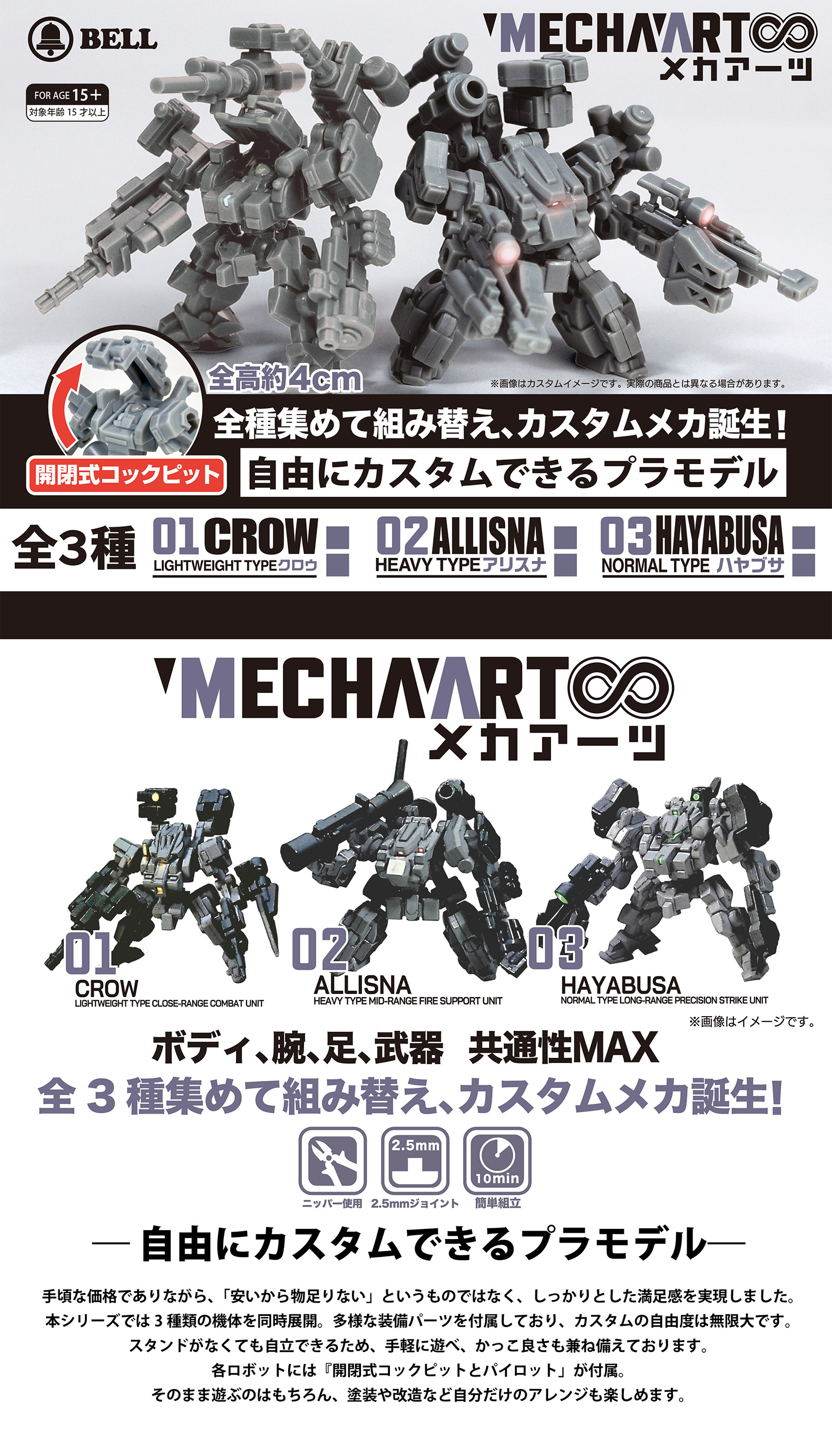 【オリジナルロボ】ベル玩菓「MECHA ART(メカアーツ)」プラモデル、1個330円の低価格でパーツの組み換え可能【予約開始】