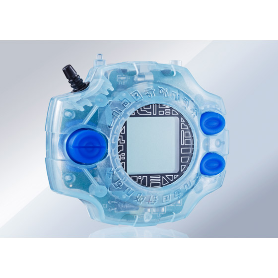 実在の透明感を表現しました。アニメに登場した本体の色を再現したデジヴァイスは初の商品化となります。