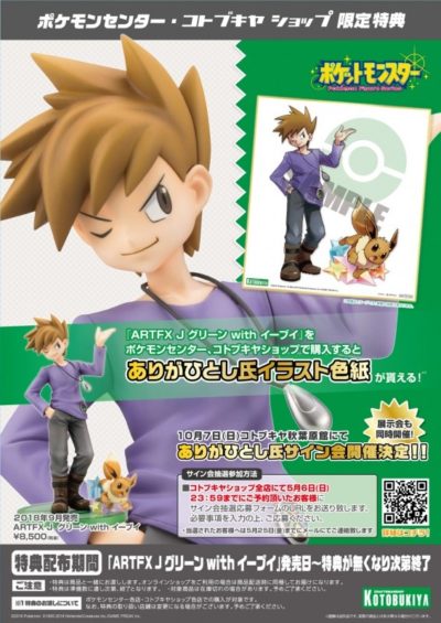 「ARTFX J グリーン with イーブイ」ポケモンセンター・コトブキヤショップ限定特典『ありがひとし氏イラスト色紙』