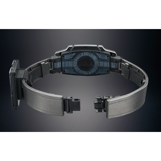 バックルのエンブレム部には、内部よりホログラムステッカーを貼り、劇中に近い構造で再現。