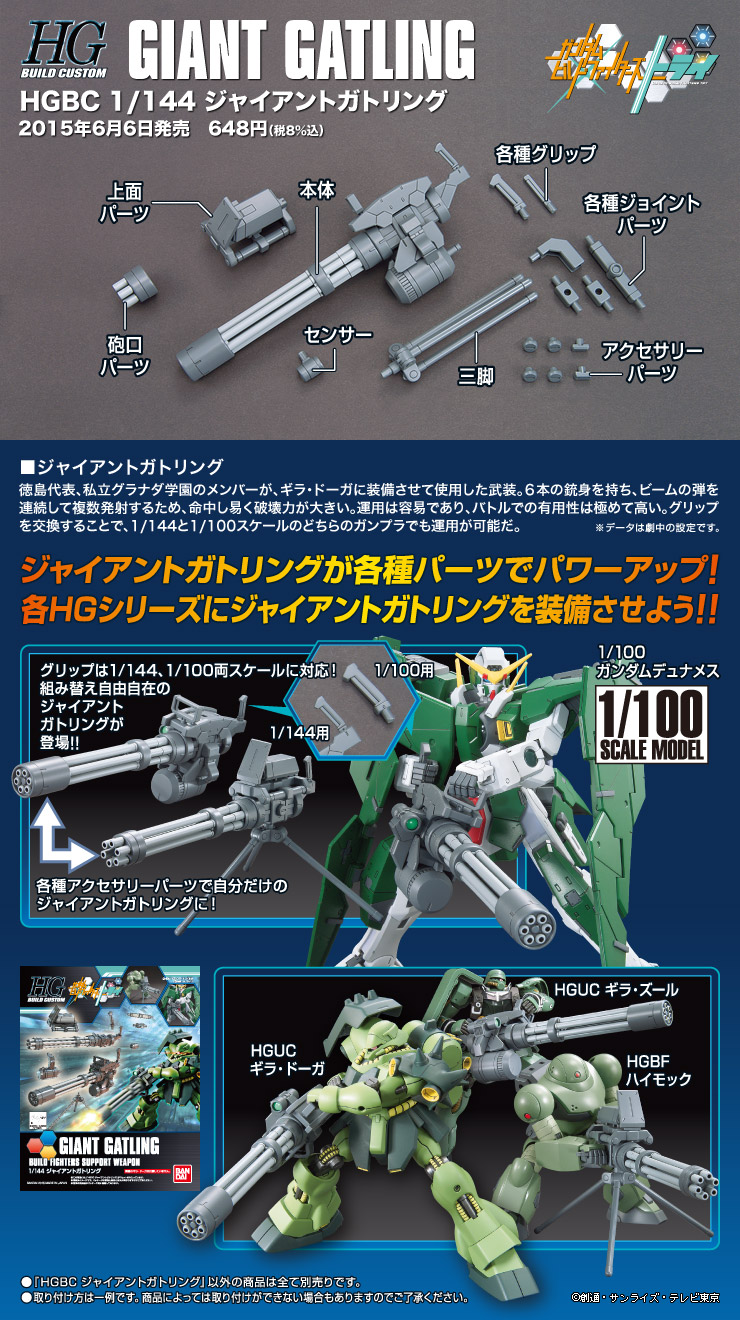 HGBF 1/144 ガンダムトライオン3」「HGBC 1/144 ジャイアントガトリング」の商品詳細を追加。