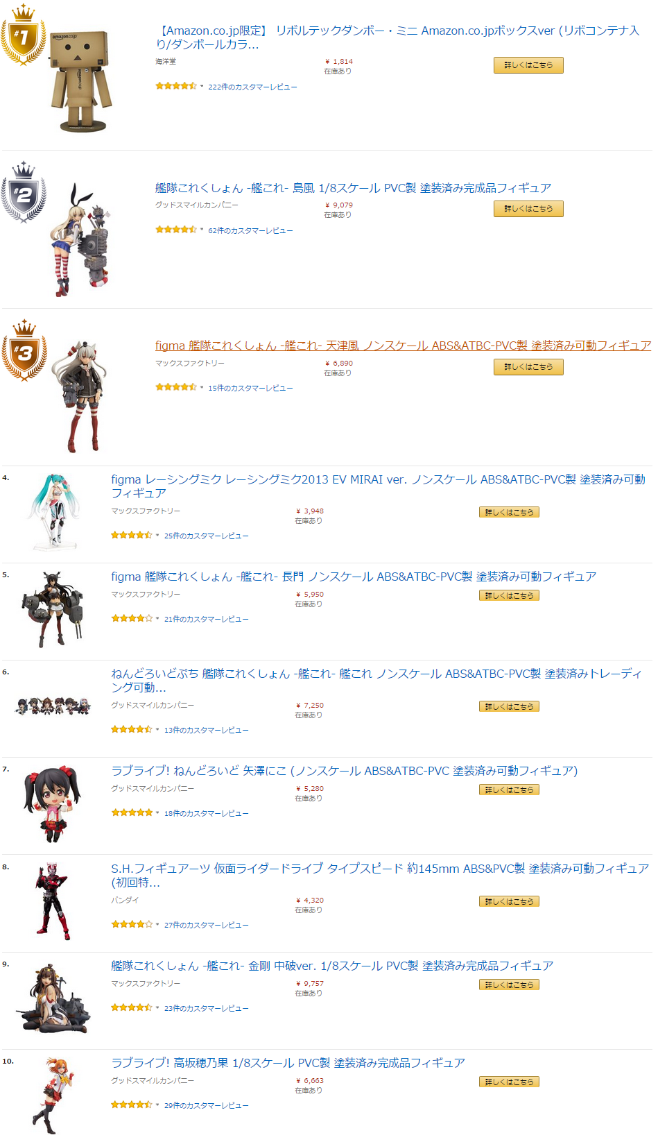 Amazon「フィギュア&プラモデル」2015年上半期ランキング発表!