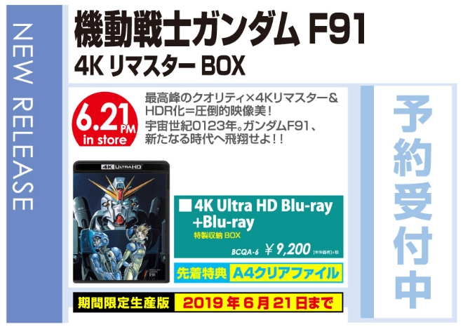 【早期購入特典あり】 機動戦士ガンダムF91 4KリマスターBOX (4K ULTRA HD Blu-ray&Blu-ray Disc 2枚組) (特製A4クリアファイル付)(Amazon)