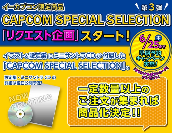 イーカプコン限定ミニサントラとイラスト設定集「CAPCOM SPECIAL SELECTION」のリクエスト企画が実施中!