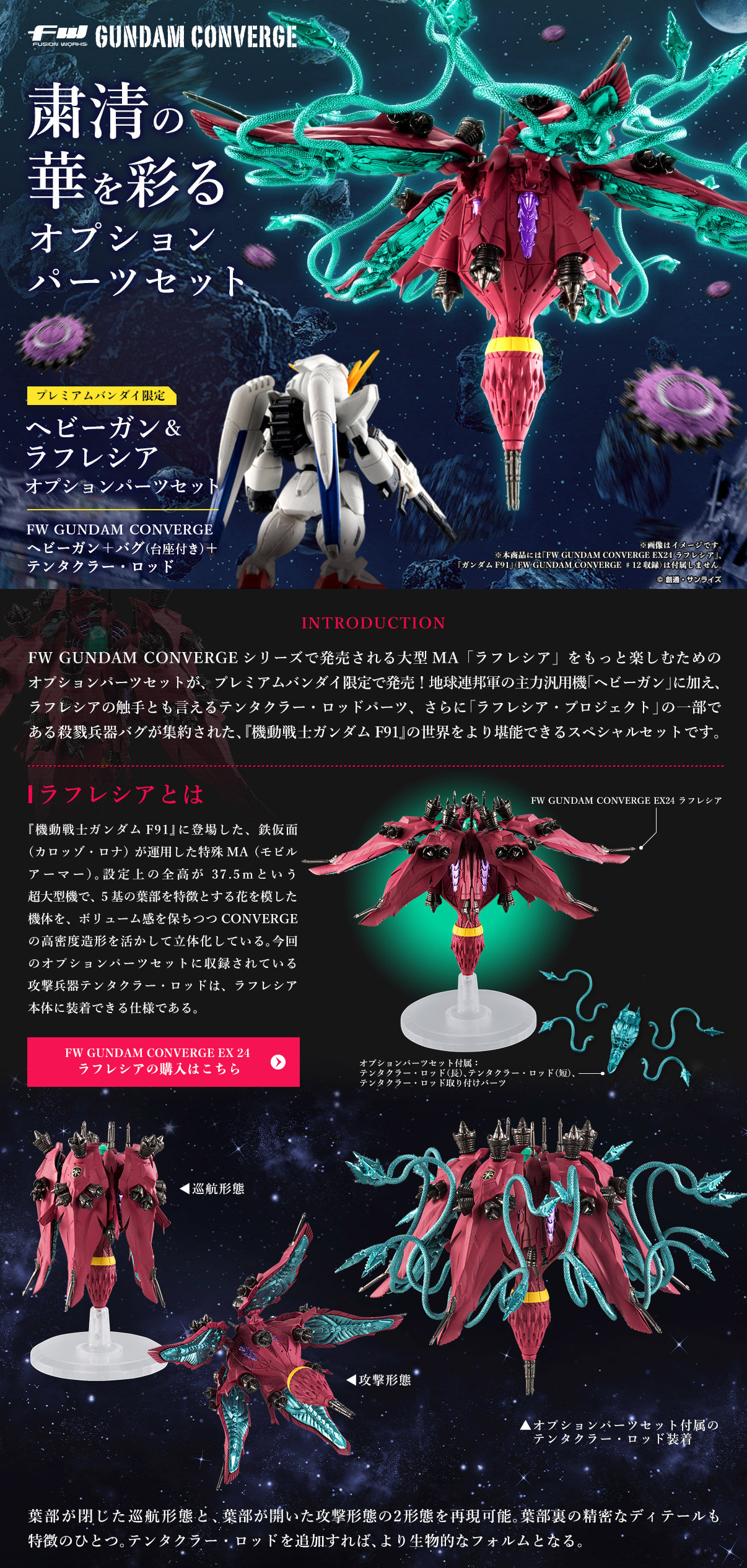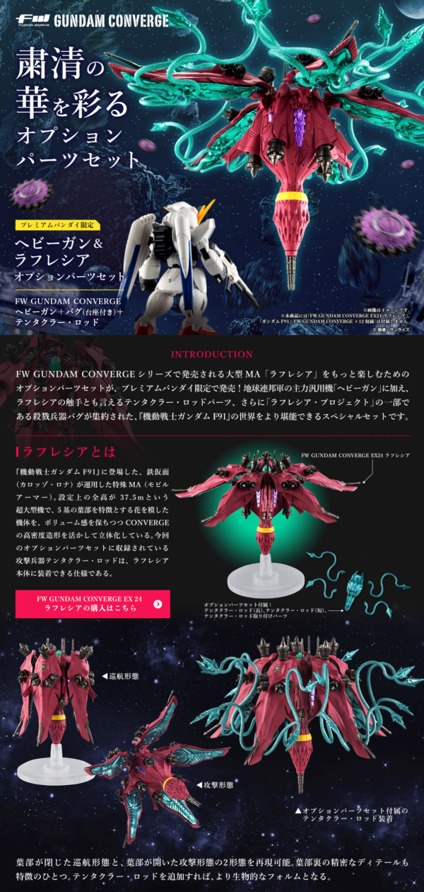 FW GUNDAM CONVERGEシリーズで発売される大型MA「ラフレシア」をもっと楽しむためのオプションパーツセットが、プレミアムバンダイ限定で発売!