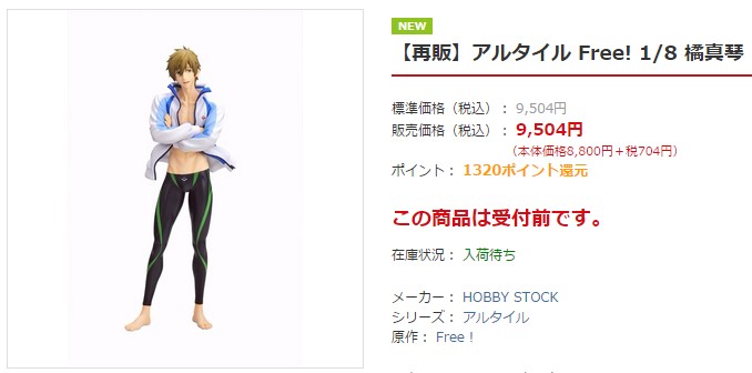 【再販】アルタイル Free! 1/8 橘真琴(ホビーストック)