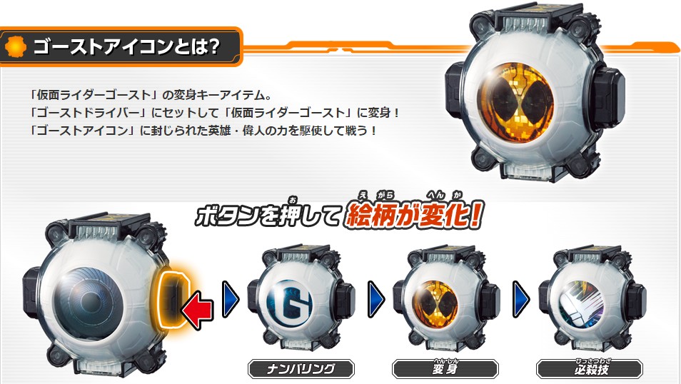 【仮面ライダーゴースト】DX「ゴーストドライバー」「ゴーストアイコン」情報更新 2015年08月13日 12:51 特撮/怪獣仮面ライダーゴースト|CM() バンダイ玩具サイト更新 DXゴーストドライバー、ゴーストアイコンの追加情報を更新!rider.b-boys.jp/仮面ライダー ゴースト SG ゴースト アイコン 1 8個入 食玩・清涼菓子(仮面ライダー)