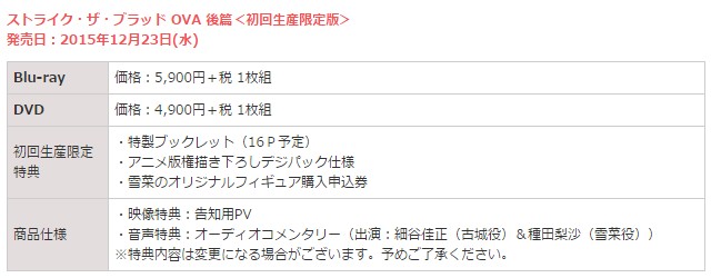 Blu-ray/DVD「ストライク・ザ・ブラッド OVA後篇 初回生産限定版」には「姫柊雪菜」フィギュア購入申込券が封入