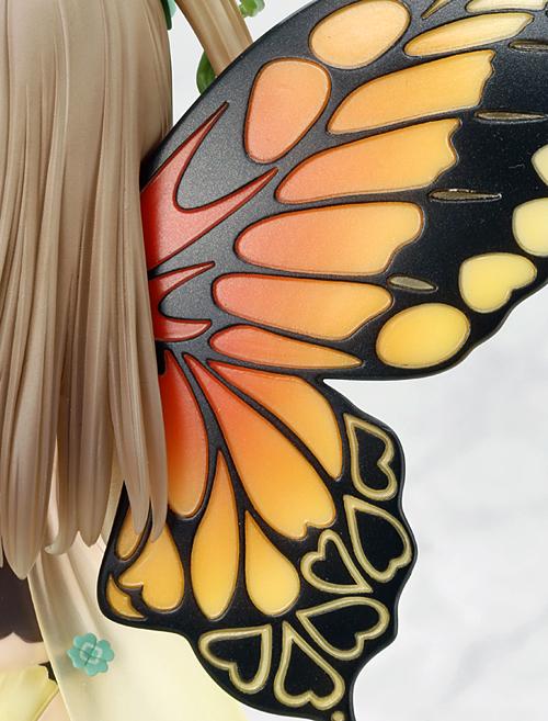 特徴的な翅は、透明感に加えて光の加減でキラキラと輝いて見えるよう、クリアパーツにパール質感の塗装を施しました。