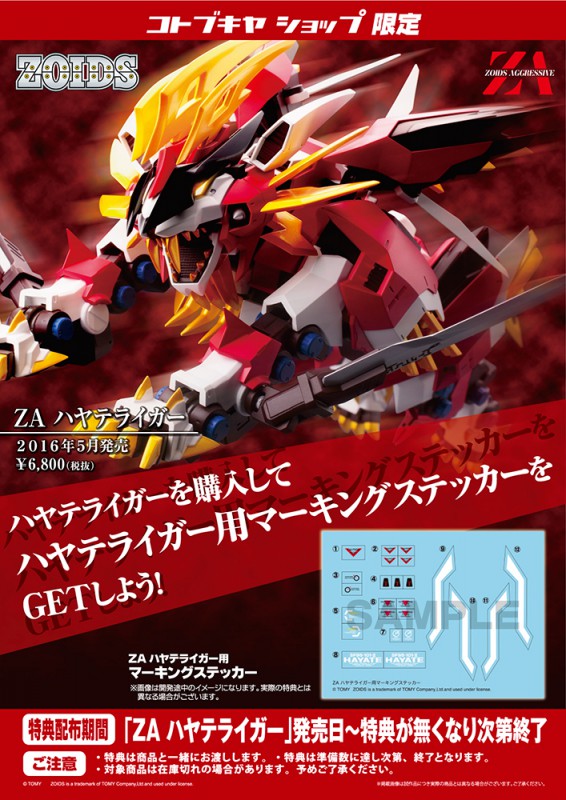 「ZAハヤテライガー」《2016年4月発売》をご予約・購入で『ZAハヤテライガー用マーキングステッカー』をプレゼント!