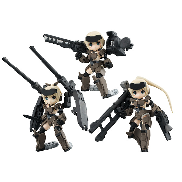 島田フミカネ氏描き下ろしのメインビジュアルのイメージを忠実に再現した80mmのかわいい素体に、砲撃戦主体の大型武装が付属した全3種での展開です。