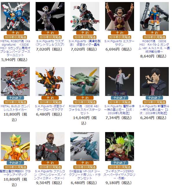 魂ウェブ商店 2019年1月発送商品(プレバン)