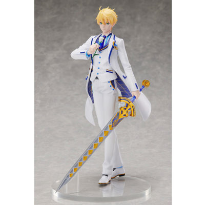 ネクタイや胸ポケットのラペルピン、そして左手に持つ 宝具「約束された勝利の剣(エクスカリバー)」の細部まで緻密に作り込まれた造形も必見。