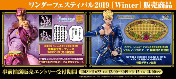 【ジョジョの奇妙な冒険】「超像可動 空条承太郎・フォース」「スタチューレジェンド ジョルノ・ジョバァーナ 特典台座付き限定版」ワンフェス販売決定