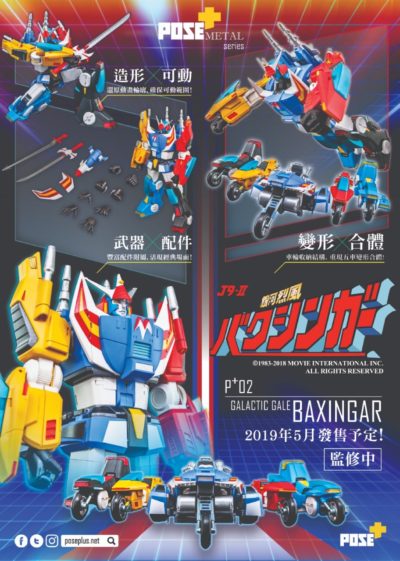 POSE+ Metal「銀河烈風バクシンガー」可動フィギュア 近日予約開始 2018年12月20日 22:03 ロボット銀河烈風バクシンガーPOSE+ Metal|CM() 商品画像公開 ■海外メーカー新アクションフィギュアシリーズ「銀河烈風バクシンガー」商品画像公開 POSE+ Metal (ポーズメタル)シリーズ 価格8,800台湾ドル(日本円で約3万円?) 2019年9月発売 日本販売代理店 アートストーム(日本スーフェスで展示)