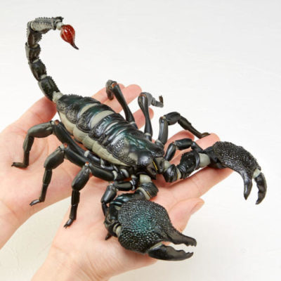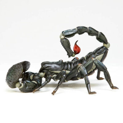 実際のサソリの可動域を踏まえ、「ハサミ~腕をコンパクトに畳む」・「尻尾の針を引き寄せた獲物に刺す」など、「よく見るサソリの動き」を再現!