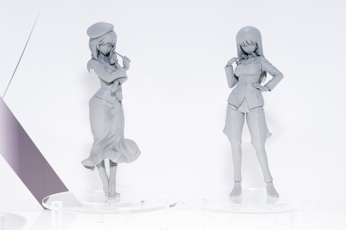 AMAKUNI“ガルパン”フィギュアシリーズより、西住流戦車道家元「西住しほ」、島田流戦車道家元「島田千代」二人の家元と、千代の娘「島田愛里寿」の原型を展示中!是非会場でご覧ください。