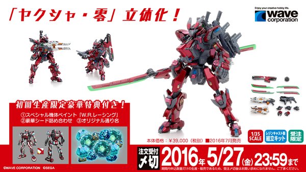 【ボーダーブレイク】ウェーブ「ヤクシャ・零 レジンキャスト組立キット」近日予約開始 2016年03月24日 19:28 ロボットWAVEボーダーブレイク|CM() 明日情報公開 ■シリーズプロデューサー Twitterよりメーカー ウェーブ価格39,000円(税別)2016年7月発売予定牛マン@3/27セガ本社ボダオフ! @usibakaひっさびさのこっそリーク:なんと!あの「ヤクシャ・零」がついに立体化!詳しくは明日正式発表するらしいっす!twitter.com/usibaka