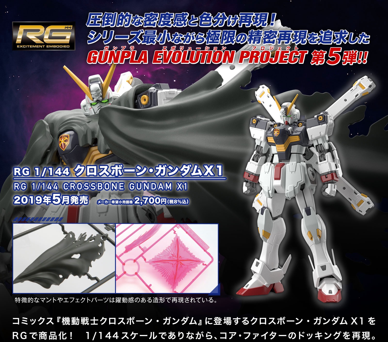 ■「RG 1/144 クロスボーン・ガンダムX1」GUNPLA EVOLUTION PROJECT第5弾に登場!!