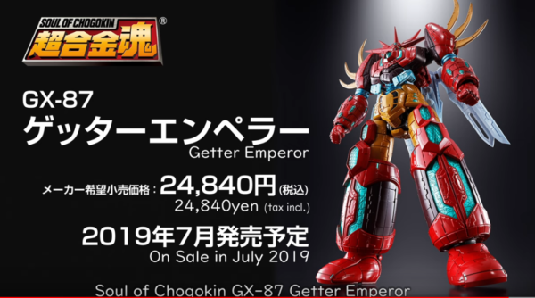 超合金魂「ゲッターエンペラー」発売決定、PV公開 2019年02月25日 22:09 ロボットロボ魂/フィギュアーツ超合金魂|CM() PV公開 ■紹介動画公開 ゲッターロボの歴史&超合金魂 GX-87 ゲッターエンペラー発売決定! ゲッターロボ。進化の究極がここに。 ゲッターロボサーガで描かれたゲッターロボの究極進化形。いまだかつて立体化されることの無かった「ゲッターエンペラー」を三機合体のギミック、巨大感を演出する精密なディテールと共に超合金魂化! 2019年7月発売予定。
