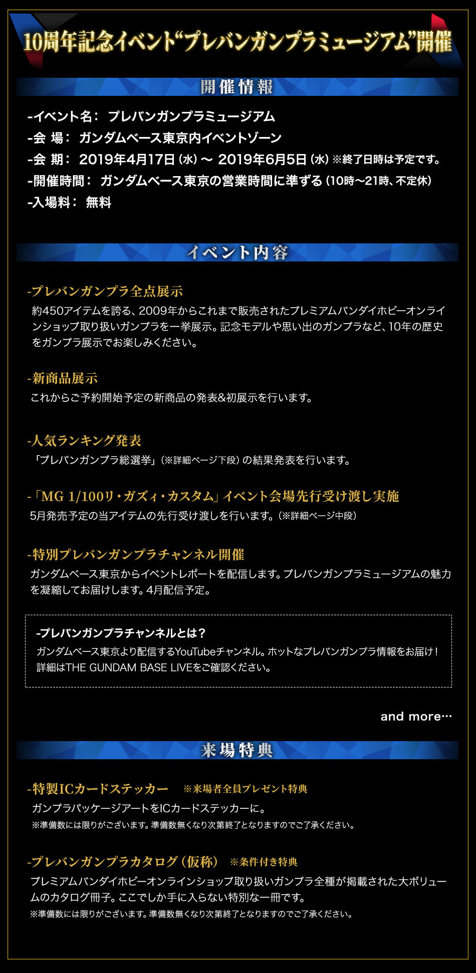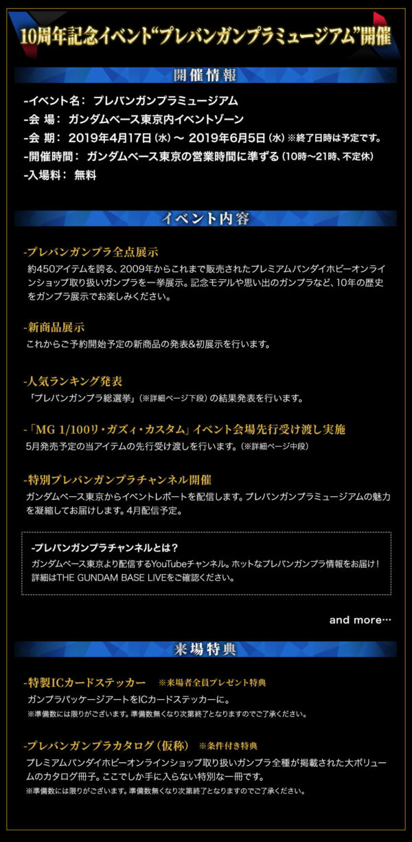 ガンダムベース企画展やプレバンガンプラ人気投票など
