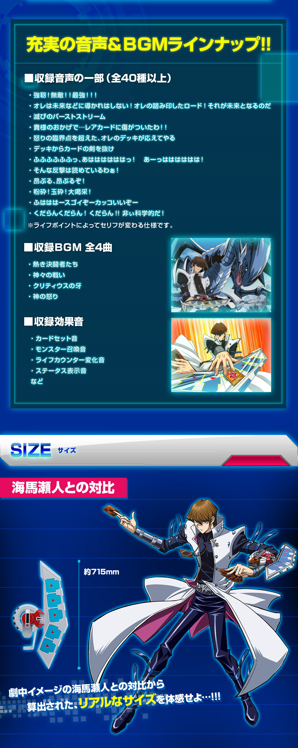 「海馬瀬人」役の津田健次郎さんによる新規収録の台詞を40種以上搭載し、