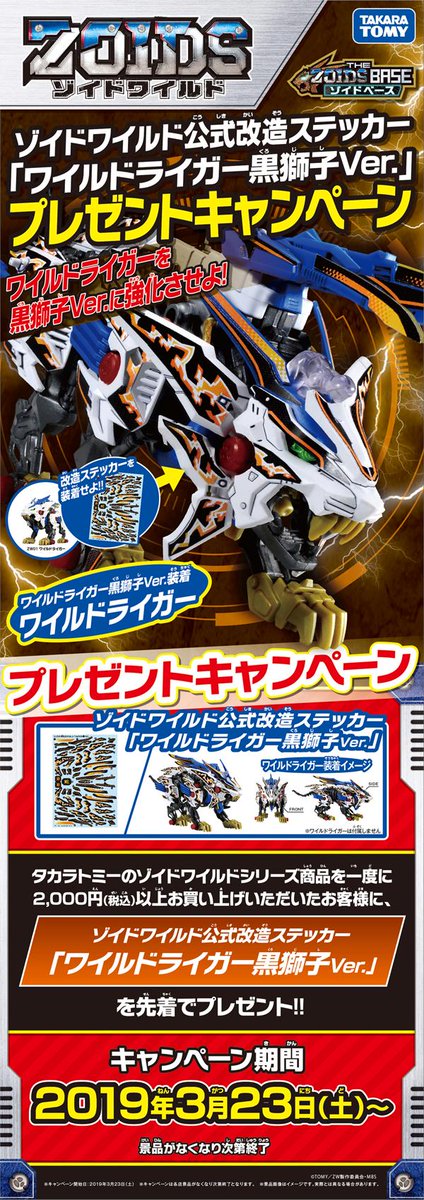ゾイドベースで2000円以上のゾイド購入で「ワイルドライガー黒獅子ver」の改造ステッカーをプレゼントします(Z oωo)ノ