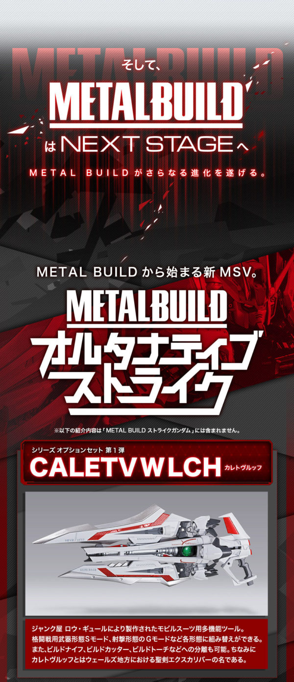 【ガンダムSEED】メタルビルド オプションセット「カレトヴッルフ」「ドラグストライクガンダム」公開! 2019年04月16日 11:39 ガンダムロボ魂/フィギュアーツガンダムSEEDメタルビルド|CM() シリーズオプションセット第1弾 ■メタルビルドオプション「カレトヴッルフ」「ドラグストライクガンダム」公開! ※本日より受注開始のメタルビルド『ストライクガンダム』には含まれません。イベント後に詳細公開予定 【開催記念商品】METAL BUILD ストライクガンダム ※会場受け取り (プレバン)