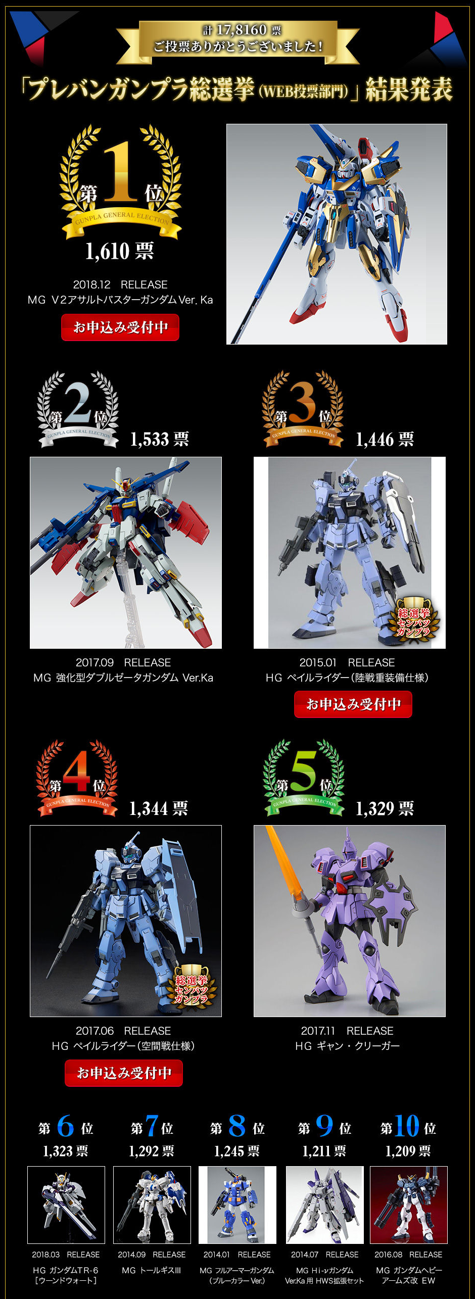 【ガンプラ】「プレバンガンプラ総選挙(web投票部門)」結果発表