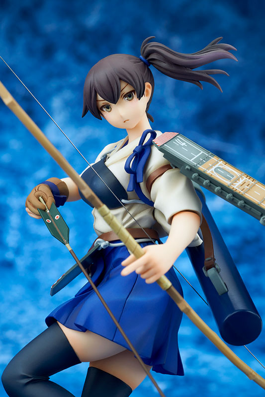 海上でターンしつつ、矢を射る直前の一瞬を切り取りました。甲板などの装備は、実艦リサーチによるディテールを反映したリアルな造形に。加賀さんの強い意志を感じさせる本作を、ぜひ提督の執務室にお迎えください!
