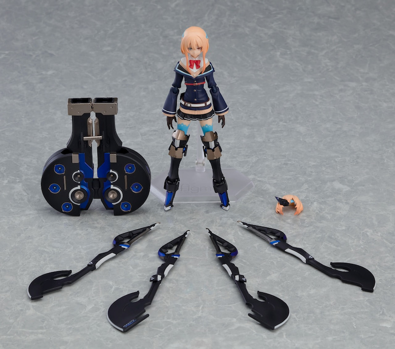 イラストレーターnecoによるオリジナル作品『重兵装型女子高生』より斧を操る「参」を商品化。要所に軟質素材を使う事でプロポーションを崩さず、可動域を確保。肩関節、股関節には引き出し関節を採用。更に可動域が広がります。付属物は斧×2、鞘、鞘収納用斧×2、ジト目眼帯顔用前髪。表情は「無表情顔」と「笑顔」、「ジト目眼帯顔」の3種。イラストの精密なディテールをfigmaサイズでも再現。トミーテックから発売中の「リトルアーモリー」シリーズ(別売)など、1/12スケールの小物との相性も抜群。設定資料カードが付属。