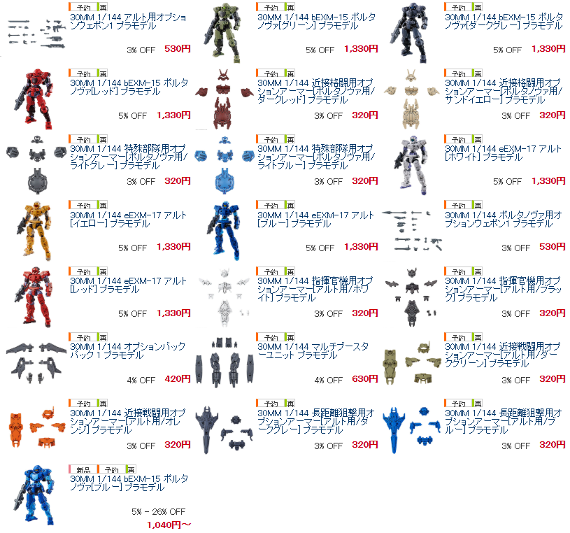 ▽予約ページ30MM 1/144 bEXM-15 ポルタノヴァ[レッド] プラモデル