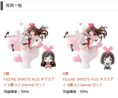 ※A賞とB賞のキズナアイフィギュアは同仕様になります。