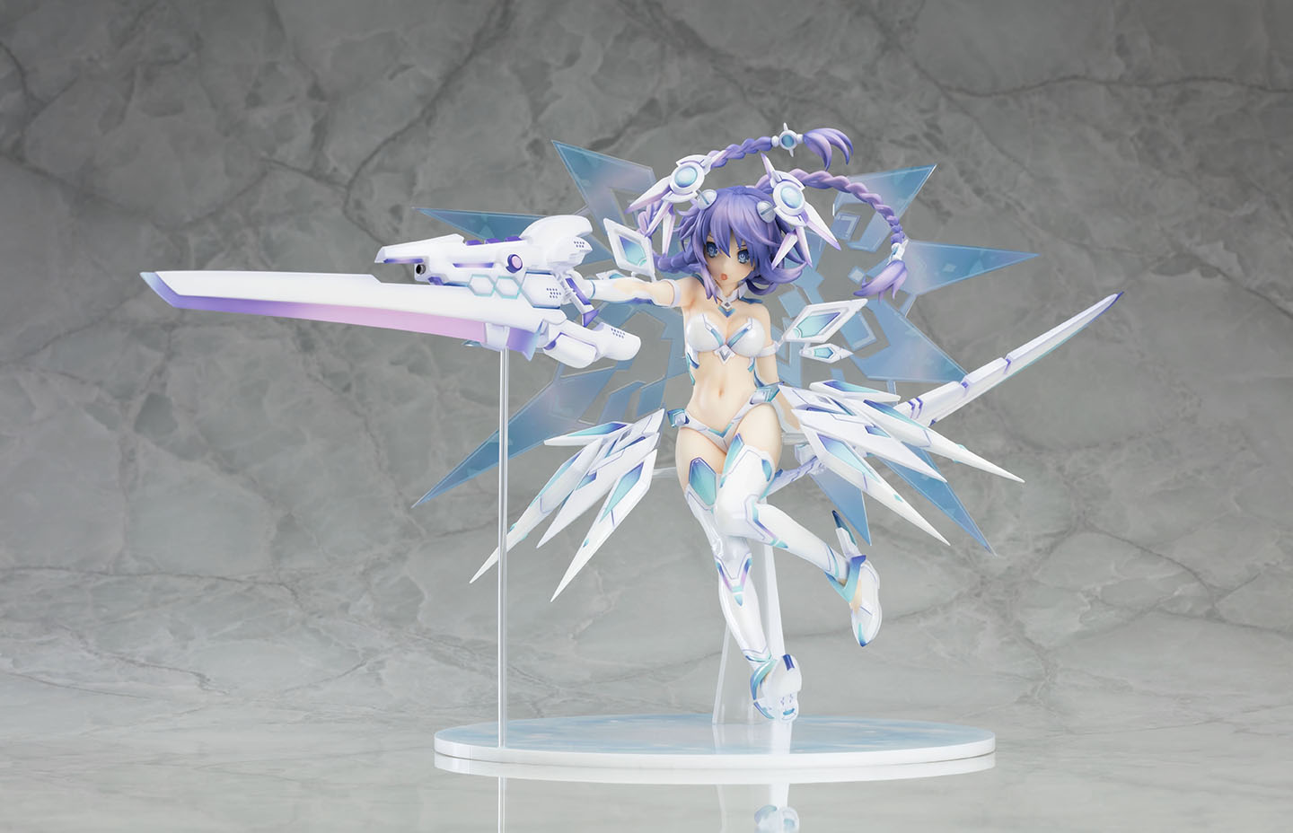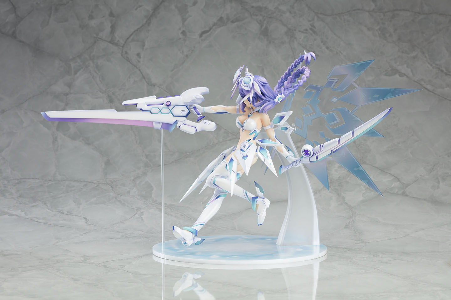 原作キャラクターデザインつなこ氏描き下ろしの「パープルハート・ライラックCOOL」を、イラストの雰囲気をそのままに忠実に立体化。躍動感溢れるポージングのボリューム感たっぷりのスケールフィギュア。グッドスマイルカンパニー製(原型制作:モワノー)。