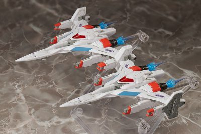 ●「ギャラガ・ファイター」にはウィング先端に接続用ジョイントを同梱。2機をドッキングさせれば作中の「デュアル・ファイター・モード」を再現可能(※)。