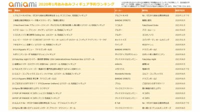 【あみあみ】2020年1月「人気フィギュア ランキング」が発表!