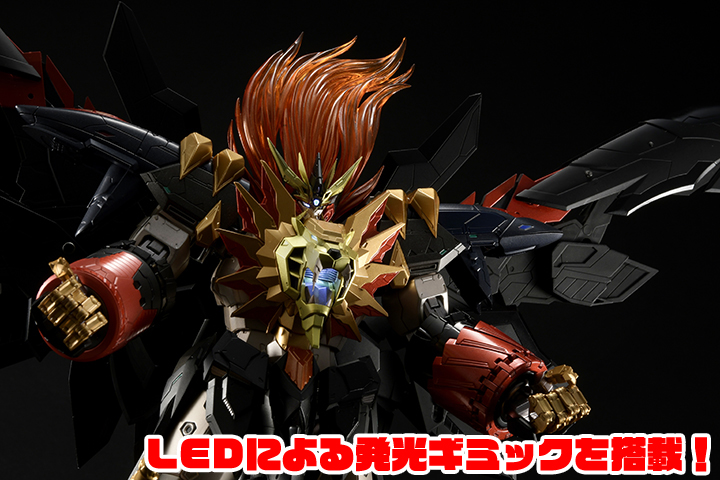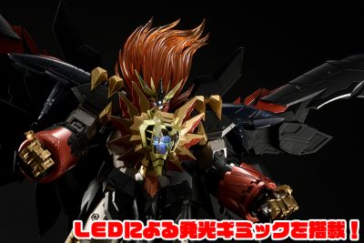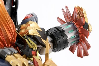 力強い造形が織りなす迫力のシルエット、変形合体機構を敢えてオミットしたことで実現された非常に高いアクション性を持つ可動ギミック、重厚さを引き立てるための塗装表現。そして、全身の関節各所に使用されたダイキャストパーツが、可動の安定性を実現するとともに、ズッシリとした重厚感を実現。
