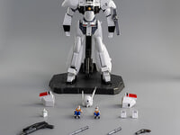 装備としてハンドリボルバーカノン、スタンスティック(延びた状態のものと縮んだ状態のもの)、ライアットガン、そして左前腕部用シールド(内側に縮んだ状態のスタンスティックを収納可能)が付属します。