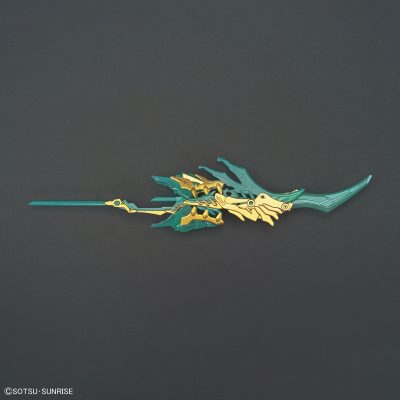 ■青龍偃月刀・至極は、関羽雲長νガンダム(別売り)に複数のパーツを追加する形で再現。組み替えることでフィンファンネル風の懸架状態、片手持ち用の形態、両手持ち用の最大形態に組み替え可能!背面にも取り付け可能!