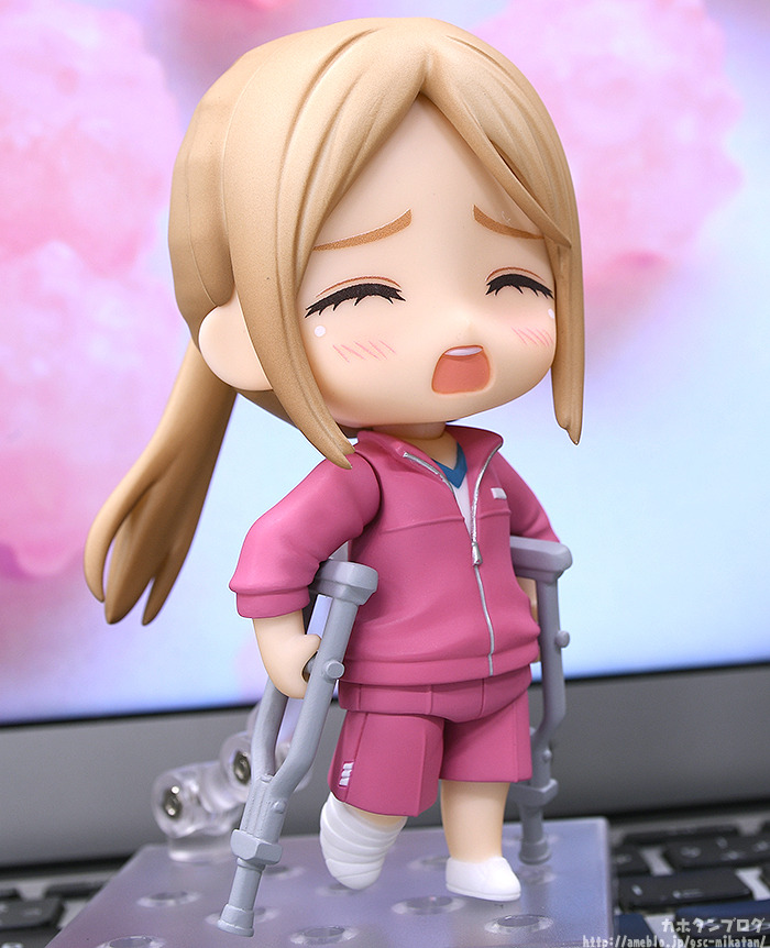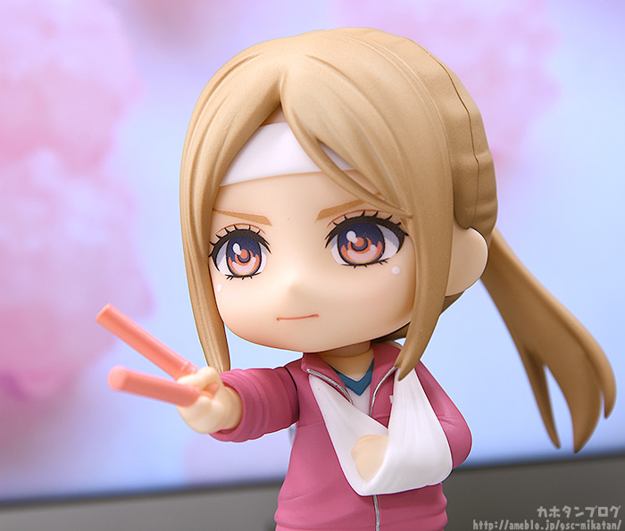 大人気テレビアニメ『推しが武道館いってくれたら死ぬ』から、アイドルグループ・ChamJamのサーモンピンク担当・市井舞菜のTO(トップオタ)「えりぴよ」がねんどろいど化。 交換用表情パーツは、真剣に舞菜を見つめる「通常顔」、舞菜を見て喜びに震えている「笑顔」、舞菜への愛が溢れすぎた「困り顔」が付属。 オタには欠かせない「個別タオル」と「ペンライト」が付属。大きめのペンライトはライトを仕込むことにより、実際に光っているような表現も可能となっています。 さらに、なにかと怪我をしがちな「えりぴよ」らしく、「三角巾付き腕&頭の包帯パーツ」」や「松葉杖」も付属します。えりぴよと一緒にオタ活動を満喫してください。