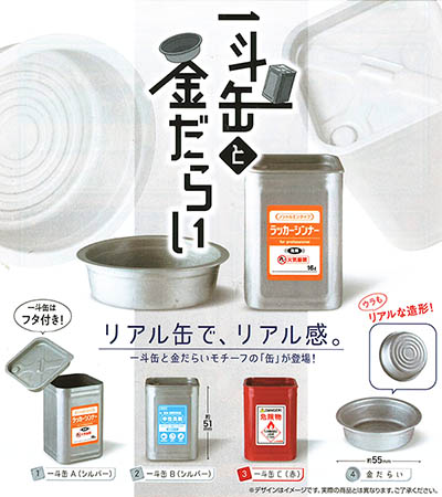 【可動フィギュアなどに】ガチャガチャ「一斗缶と金だらい」発売決定 2020年04月03日 22:07 ガチャガチャ・プライズエポックミニチュアガチャガチャ|CM() ガチャガチャ新作 ■可動フィギュアなどに、新作ガチャガチャ発売決定 一斗缶と金だらい 1回300円(ガチャガチャ) 2020年7月発売 メーカー エポック