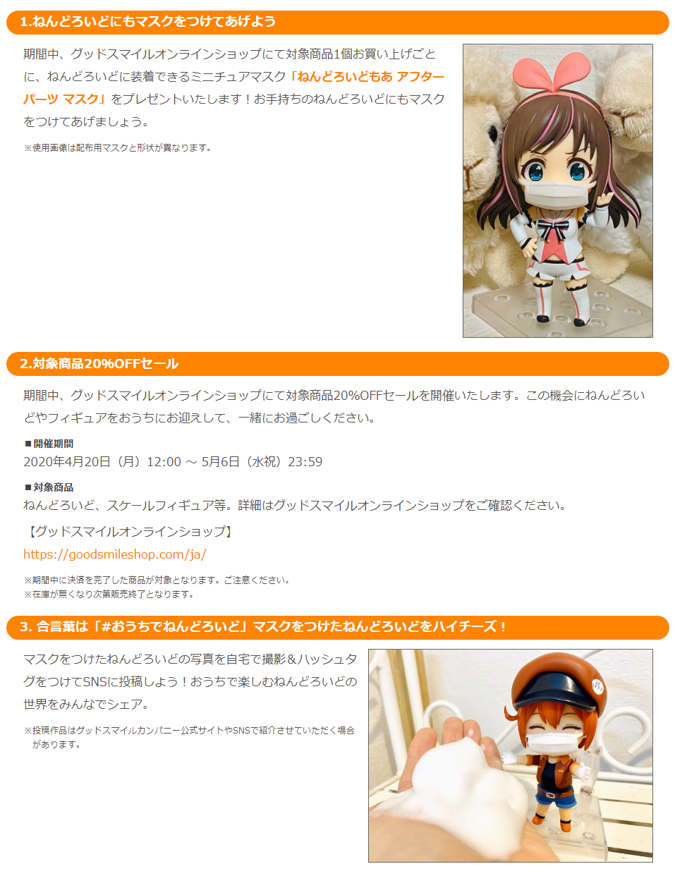 【ねんどろいど】「#おうちでねんどろいど」キャンペーン開催決定、対象商品購入でねんどろいど用マスクが貰える