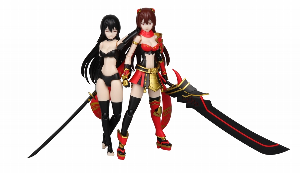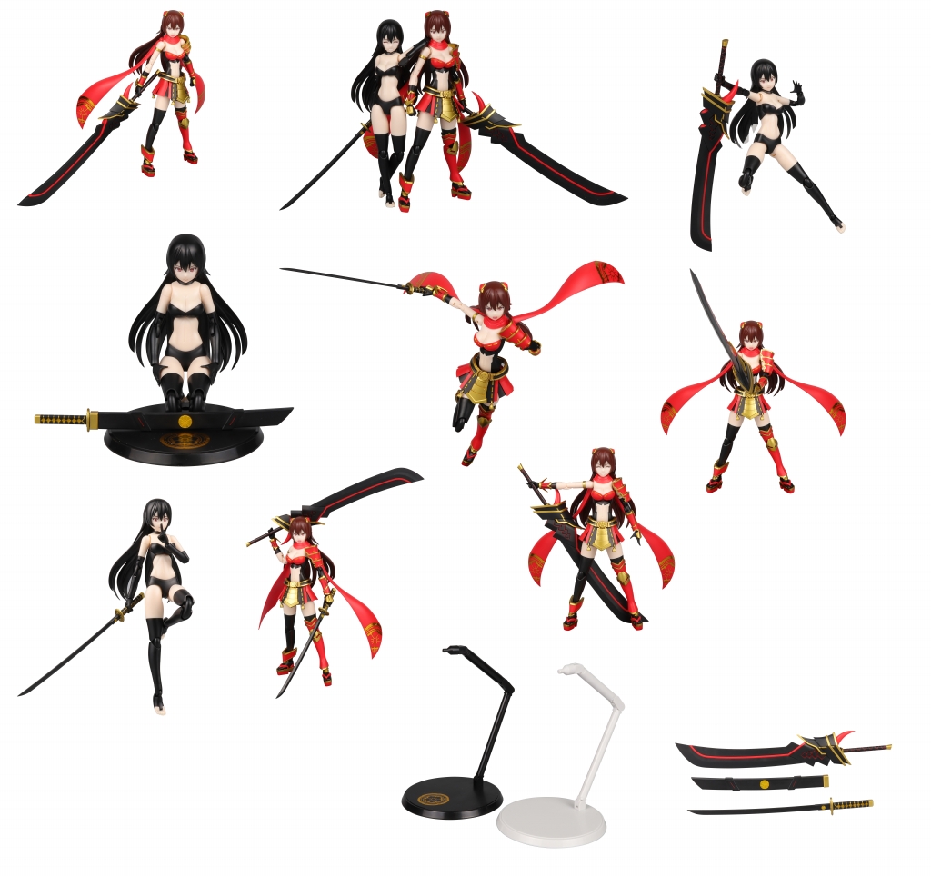今回の商品構成について、一つのキットの中に「鎧装着前」と「鎧装着後」2種類の本体が含まれており、髪パーツも赤と黒の2色があり、自由に組み替えることが出来る。まさに商品一つで2度おいしい!なお、本商品は完成品ではなく、組立が必要なプラモデル商品であるため、ご購入前に予めご了承ください。『神道物語』今後の商品展開にも是非ご注目ください!